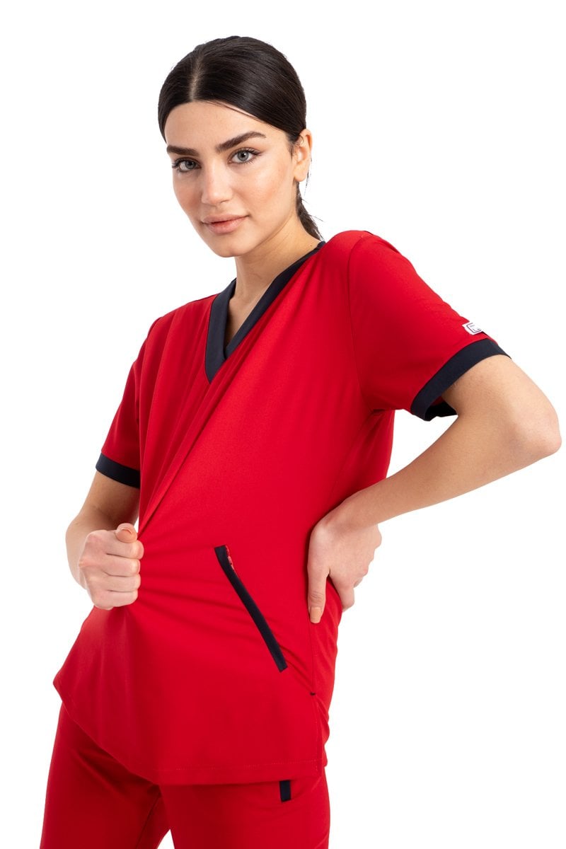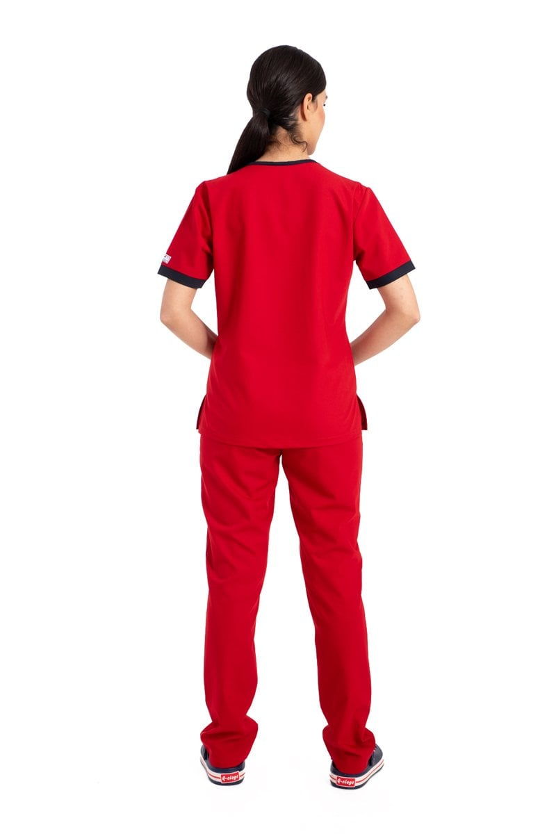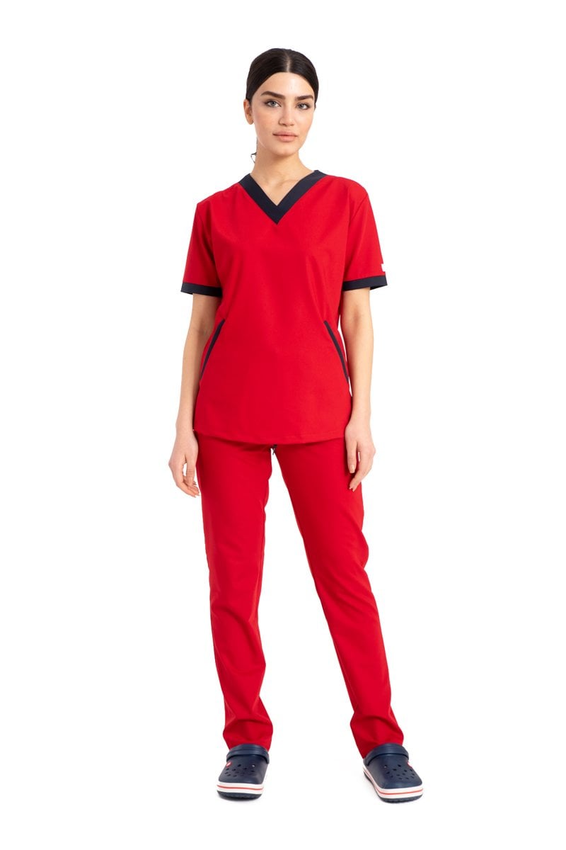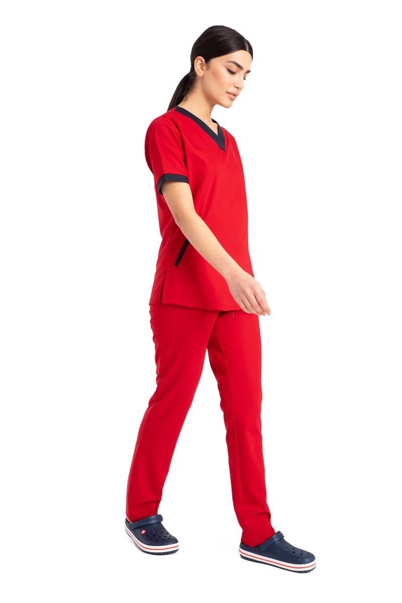 Özel Tasarım Cerrahi Forma Kırmızı Likralı Pamuklu Kumaş Kadın Ft