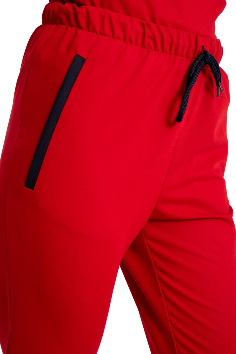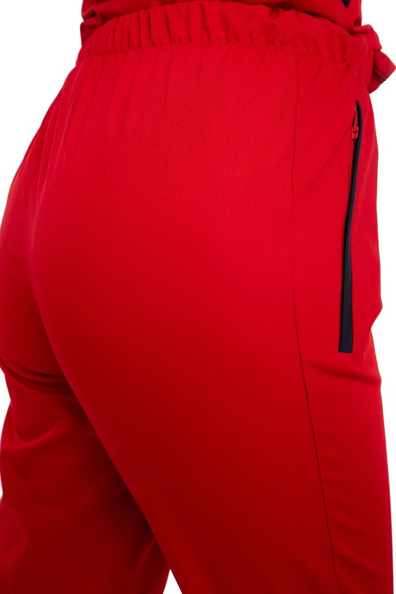 - Alt pantolonun yan cepleri kırmızı biye ile dikilmiştir.