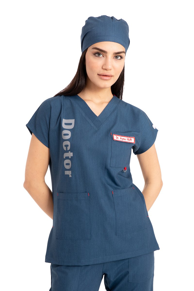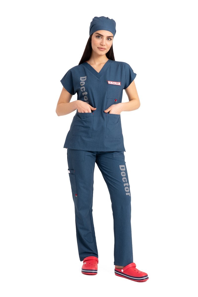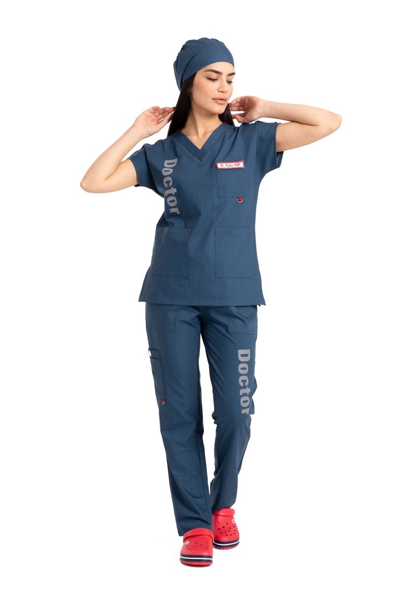 Özel Tasarım Doktor Forması Kot Kumaş Kadın Doktor Yazılı