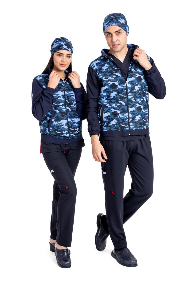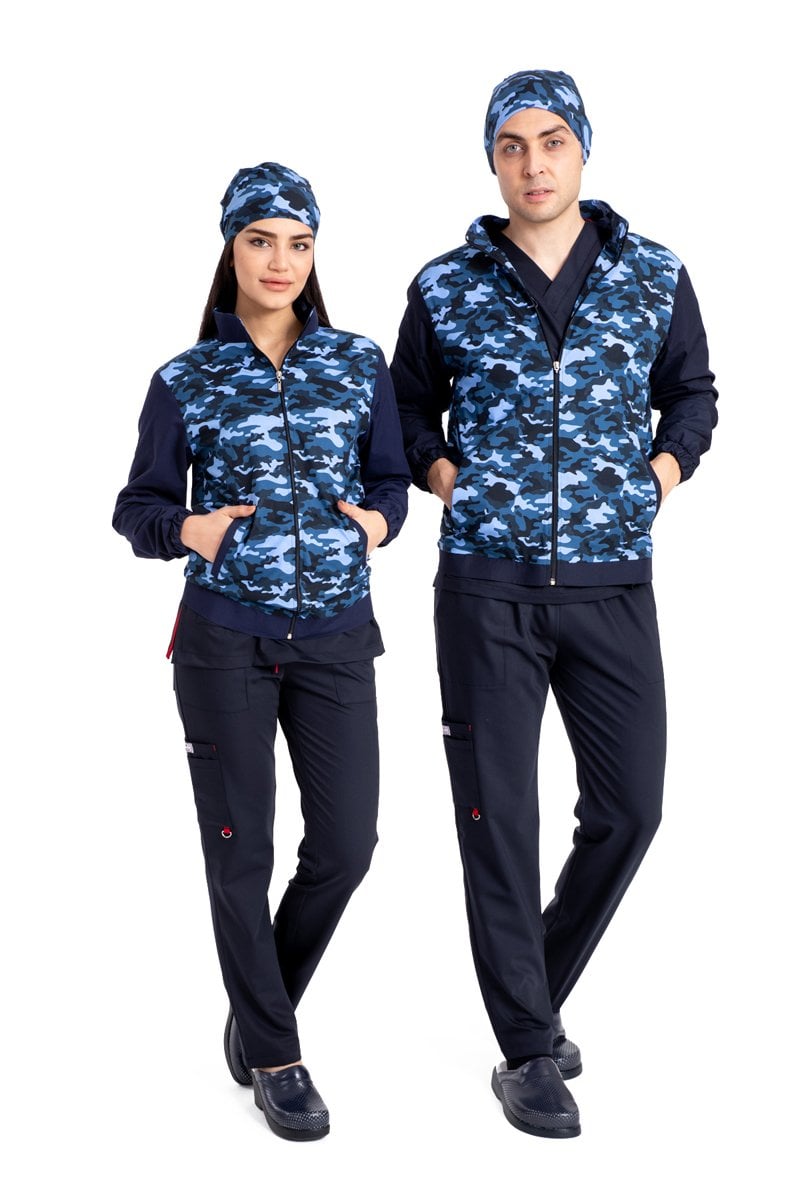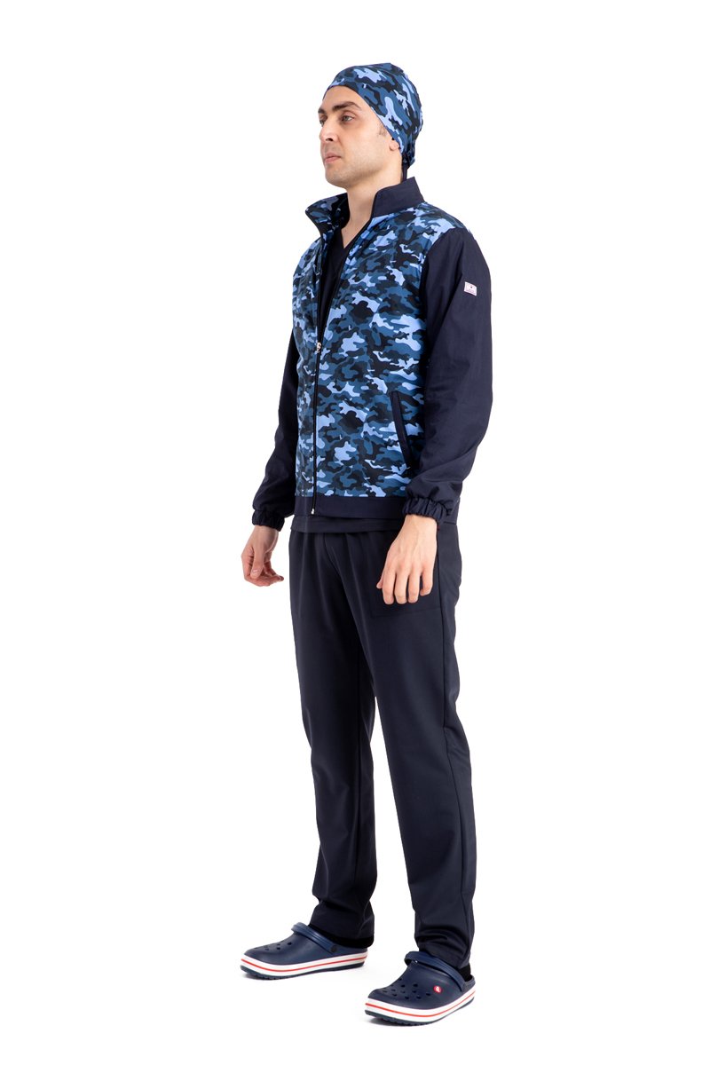 Pamuklu likralı lacivert kamuflaj desen yeni nesil fermuarlı mont unisex