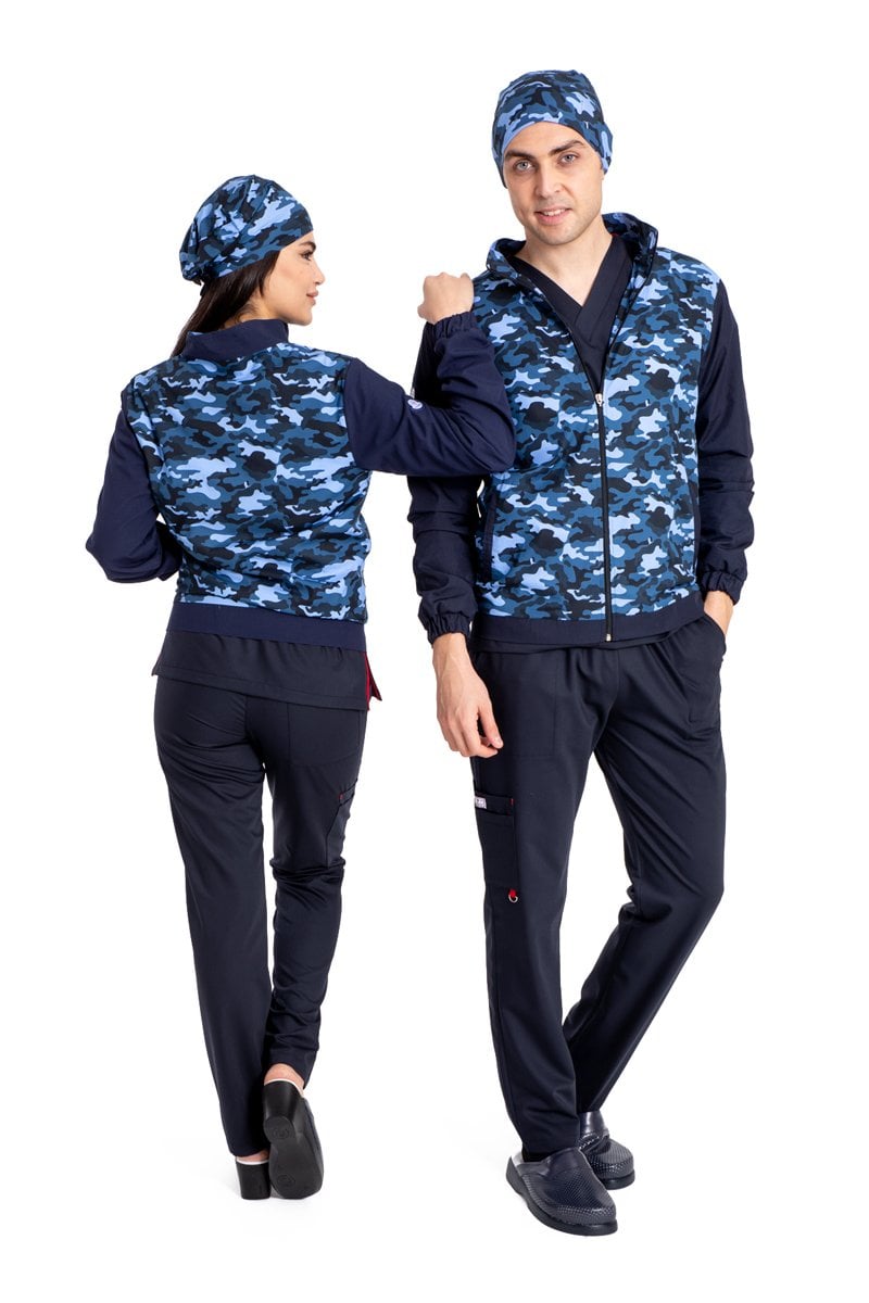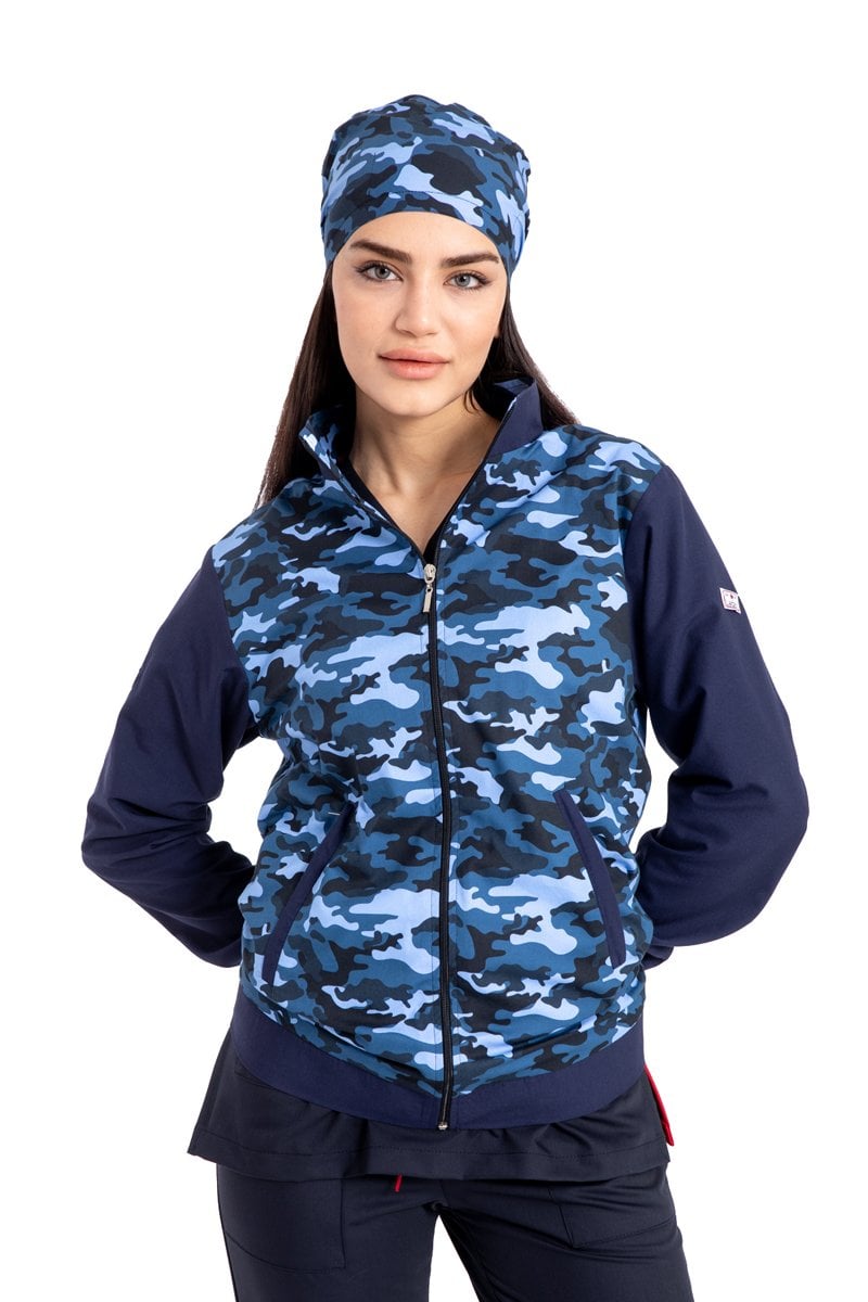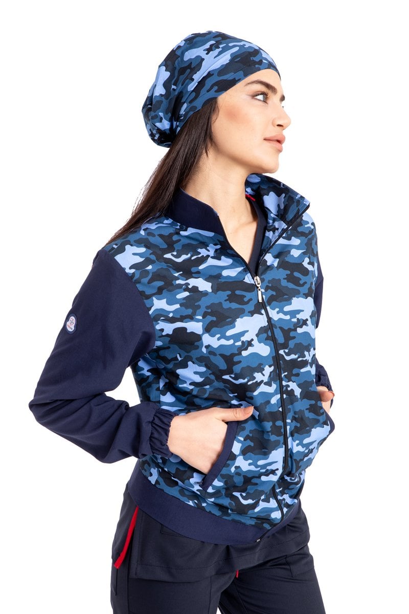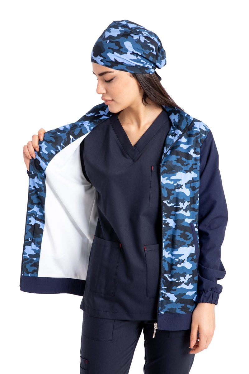Pamuklu likralı lacivert kamuflaj desen yeni nesil fermuarlı mont unisex