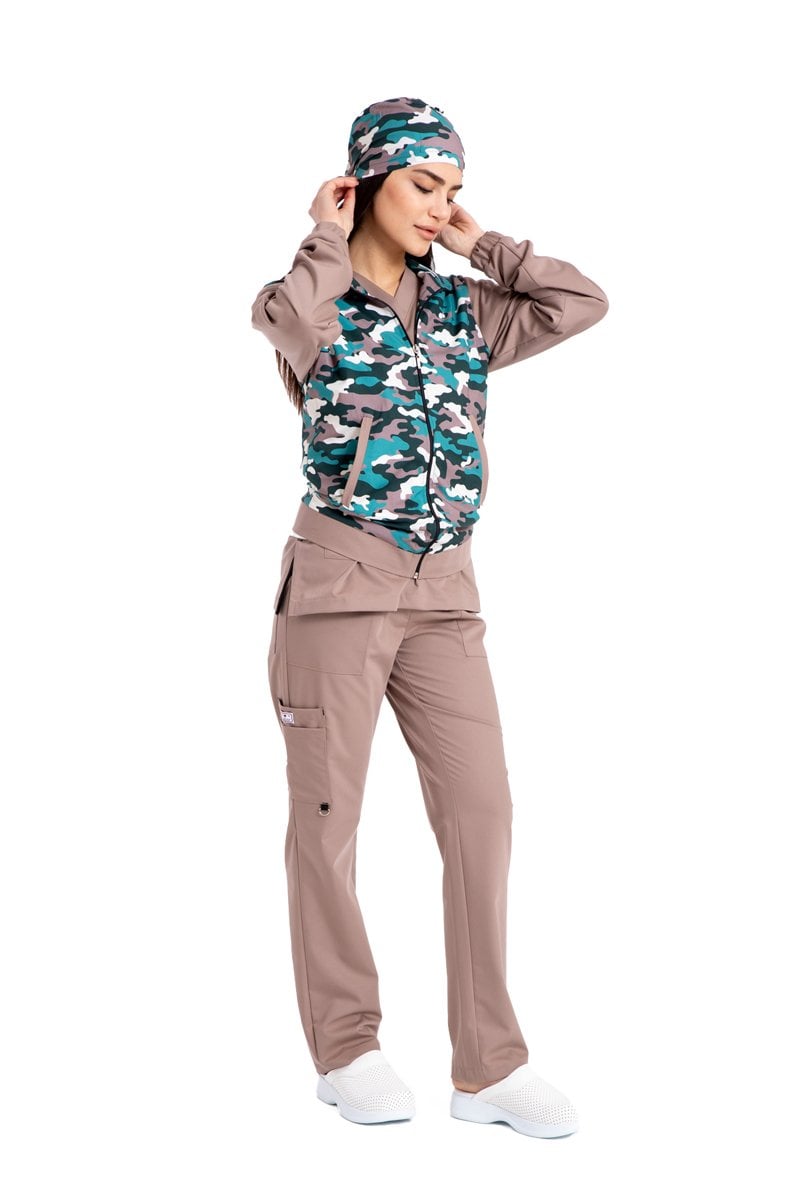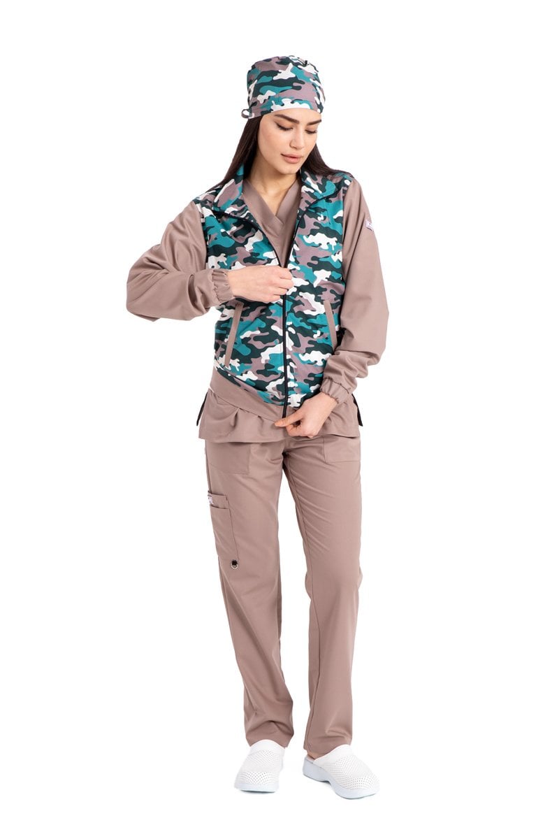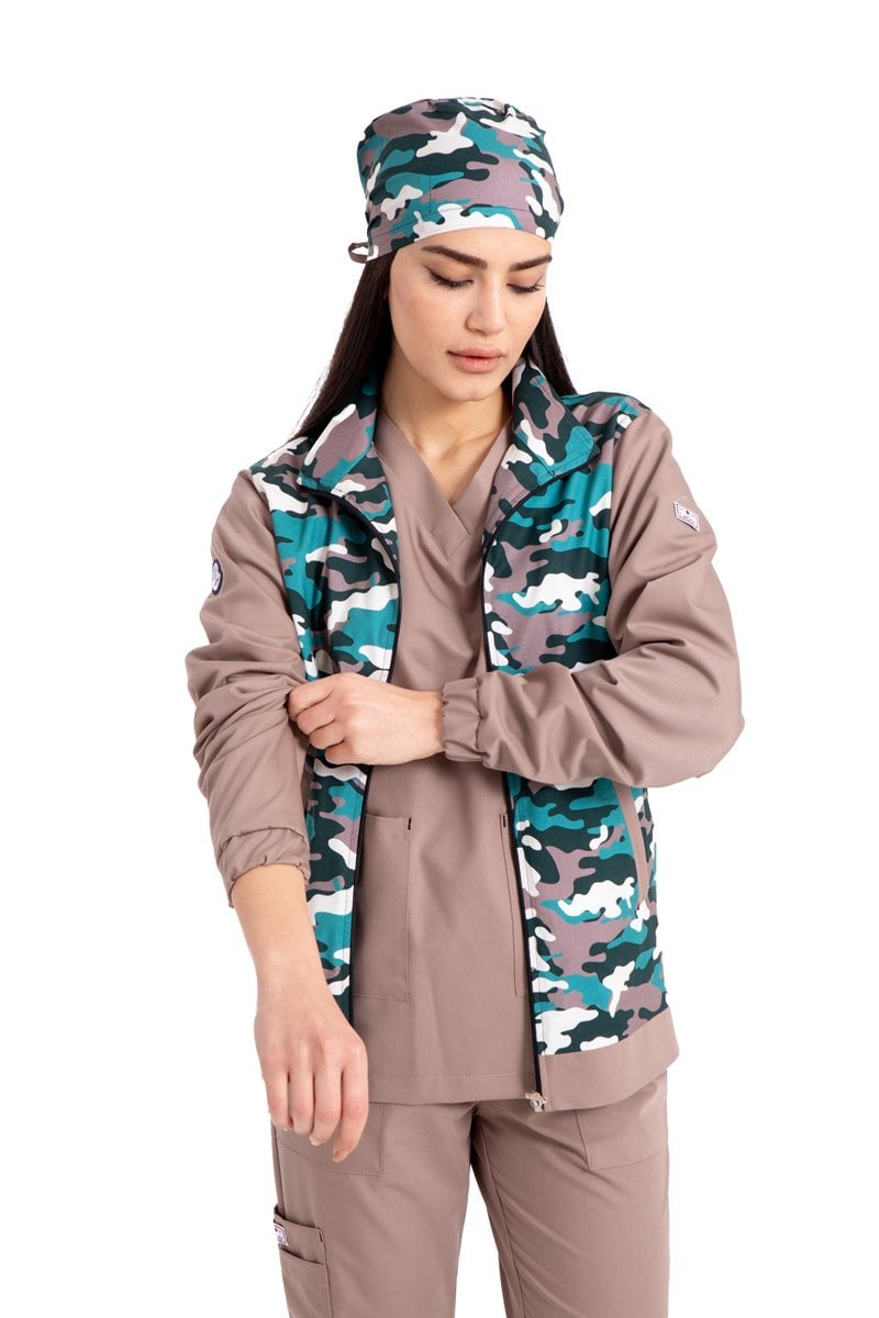 Pamuklu likralı yeşil toprak kamuflaj desen yeni nesil fermuarlı mont unisex