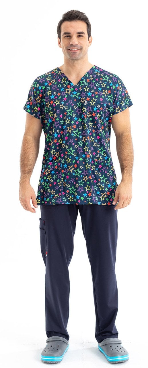 "Sağlık sektörünün geleceği parlıyor! Renkli yıldız desenleriyle tasarlanan bu özel forma, sağlık çalışanlarının enerjisini ve coşkusunu yansıtıyor. Dry Touch kumaş, yüksek hareket özgürlüğü ve üç cep detayı sayesinde gün boyu konforlu bir deneyim yaşayacaksınız. Bu formayla hem işinize odaklanabilir hem de tarzınızı yansıtabilirsiniz."
