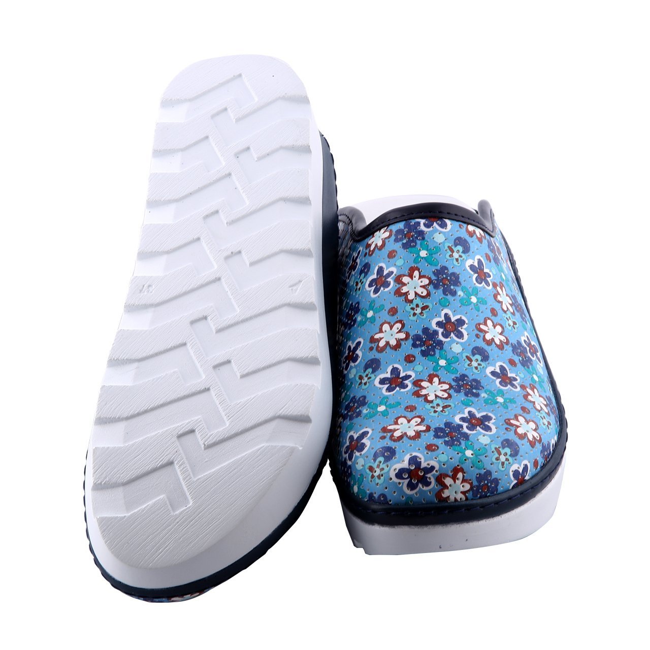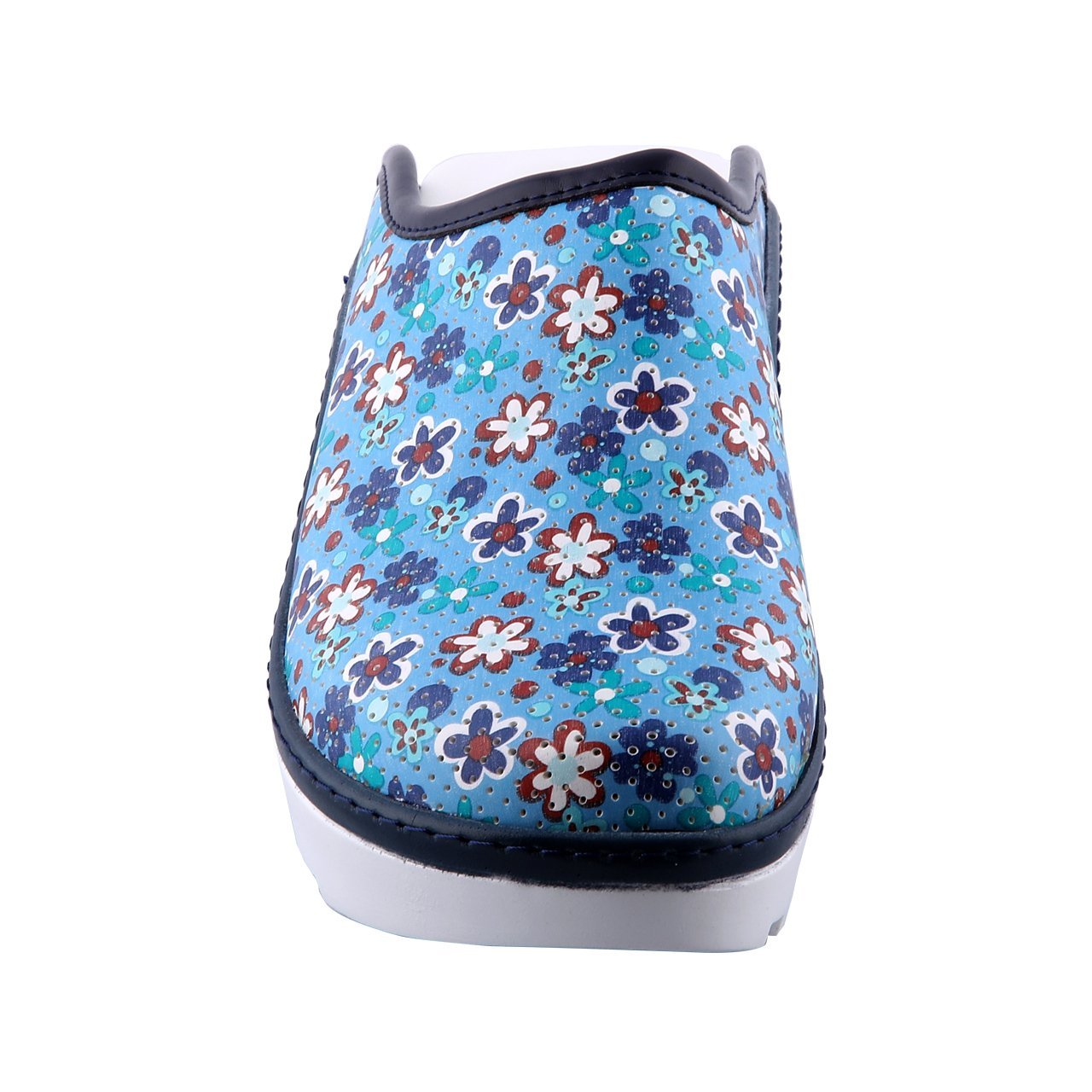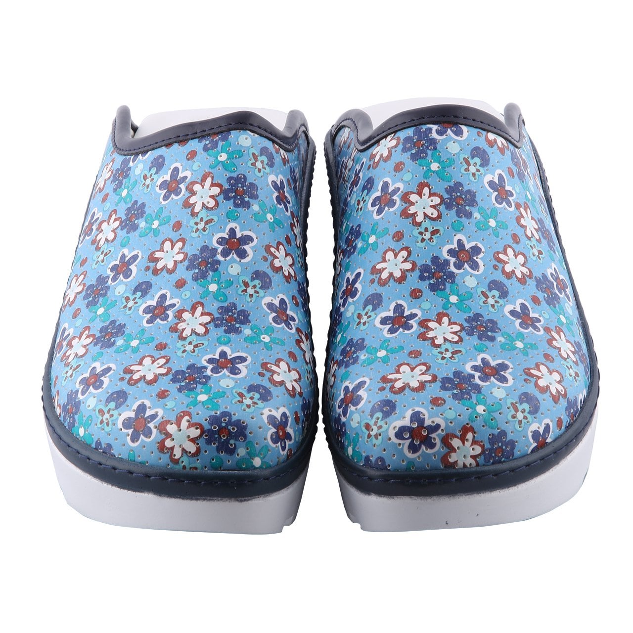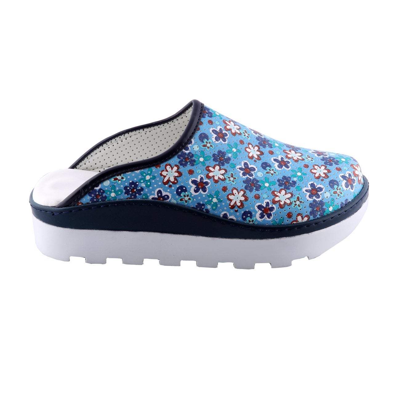 Sabo Terlik Bayan Lüx Mavi Çiçekli Ortopedik Orjinal Deri
