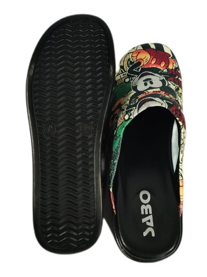 Ürünümüz siyah kalın tabanlı olup fare deseni ile güzelleştirilmiştir. Sabo mir max terlik hava tabanlı olan ve konforunuzu sağlayan terliklerimizin topuk boyu 5 cm dir ve içerisinde hava yastıkları bulunur. Kalın tabanla desteklenen terlik hava yastıkları sayesinde sizlere daha konforlu ve rahat bir gün sunar ayrıca hava yastıklarının olduğu kısmın şeffaf olması terliğin görünüşünü bozmamakla beraber göze de batmaz.