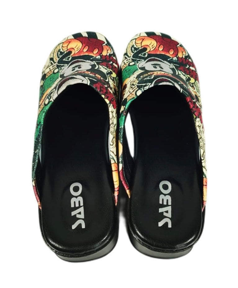 Kalın tabanla desteklenen sabo terlik, fare deseniyle göze çarpmaktadır. Bu desen özellikle işi çocuklarla olan sağlıkçıların, doktorların işine yaramakta. Çocuklar genel olarak beyaz önlük görmekten çekinirler bu ve bunun gibi onların dünyasına hoş gelen şeyler tercih etmek sağlıkçılarımızı biraz daha rahatlatacak ve çocuklarla daha güzel iletişim kurma imkânı sağlayacaktır.