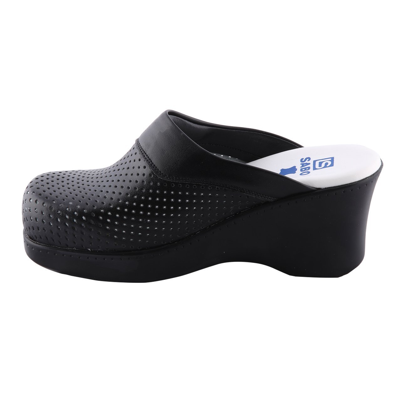 - Siyahdolgu topuklu Sabo terlik, ön bölümündeki delikli yapısıyla ayağınızın terlemesini önler. Yaz, kış rahatlıkla giyebilirsiniz.