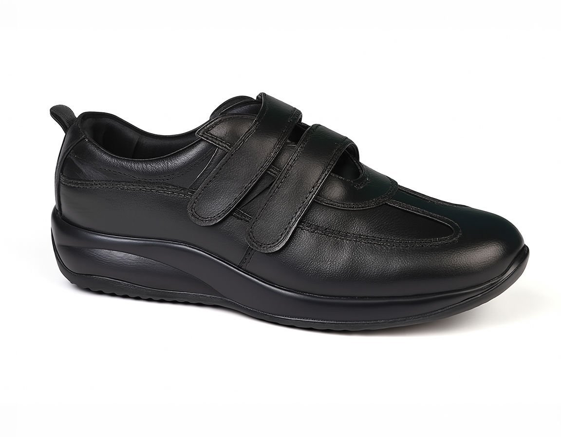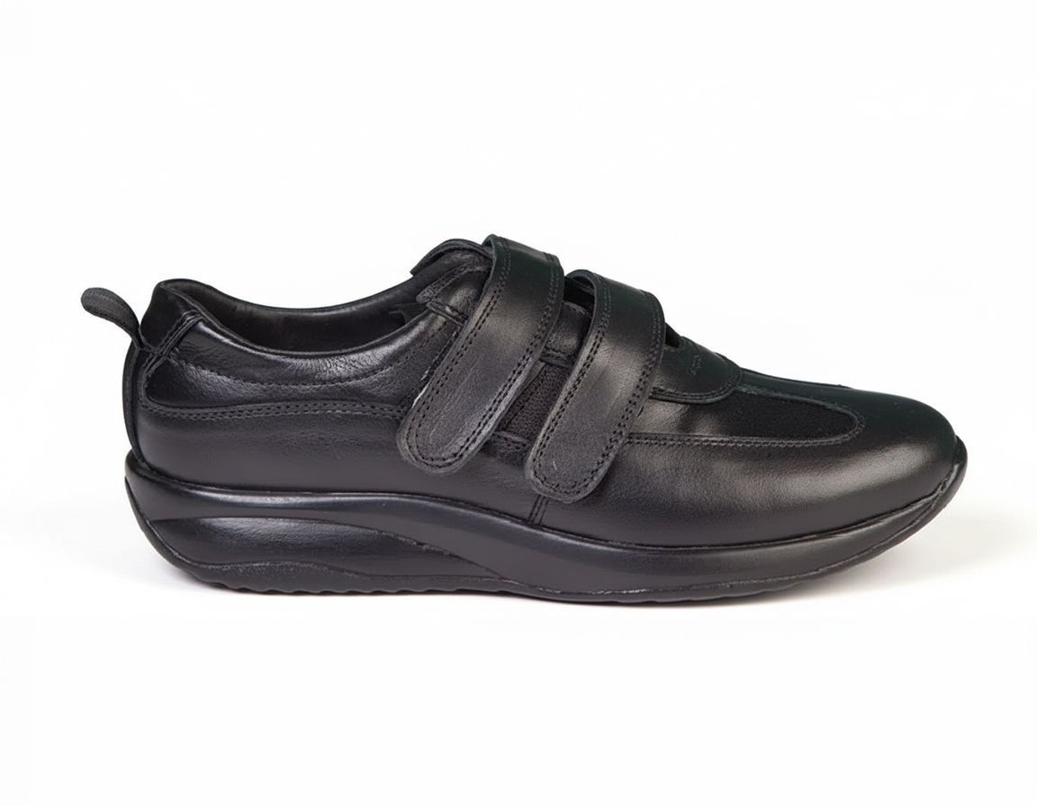 Model 461, günlük kullanımda konforu ve pratikliği bir araya getiren özel bir tasarıma sahiptir. Cırt cırtlı kapanışı sayesinde kolayca giyilip çıkarılabilir, ayakta sabit durarak güvenli bir adım deneyimi sunar. Deri üst yüzeyi hem şık bir görünüm sağlar hem de uzun ömürlü kullanım için dayanıklılık sunar. Yumuşak iç astarı ve ergonomik tabanı, uzun süreli yürüyüşlerde bile rahatlık sağlar. Hafif yapısı sayesinde ayakta ağırlık hissi oluşturmaz. Özellikle hassas ayak yapısına sahip bireyler için ideal bir tercihtir.