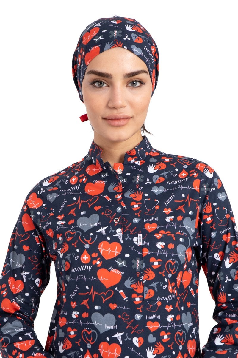 Tesettür bonesi kalp tıp desen pamuklu likralı
