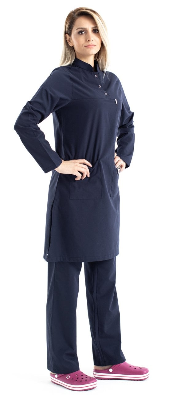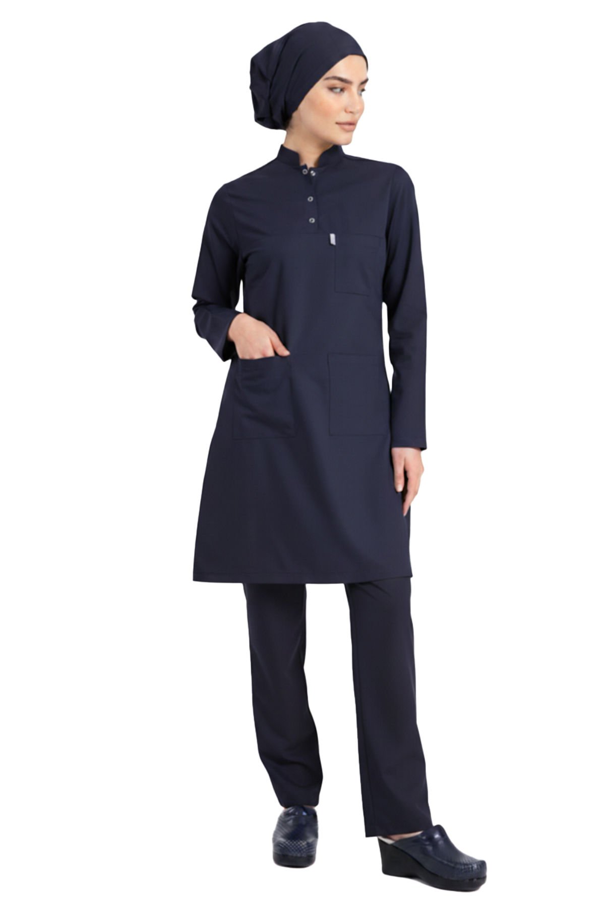 Tesettür doktor forması hakim yaka terikoton takım ürünü Labor Tekstil tarafından üretilmiş bir üründür. Bu ürün hemşirelerin giyebilmesi için üretilmiştir. Ürünü tesettür giyim tarzını benimsemiş olan doktor ve hemşireler kullanabilir.