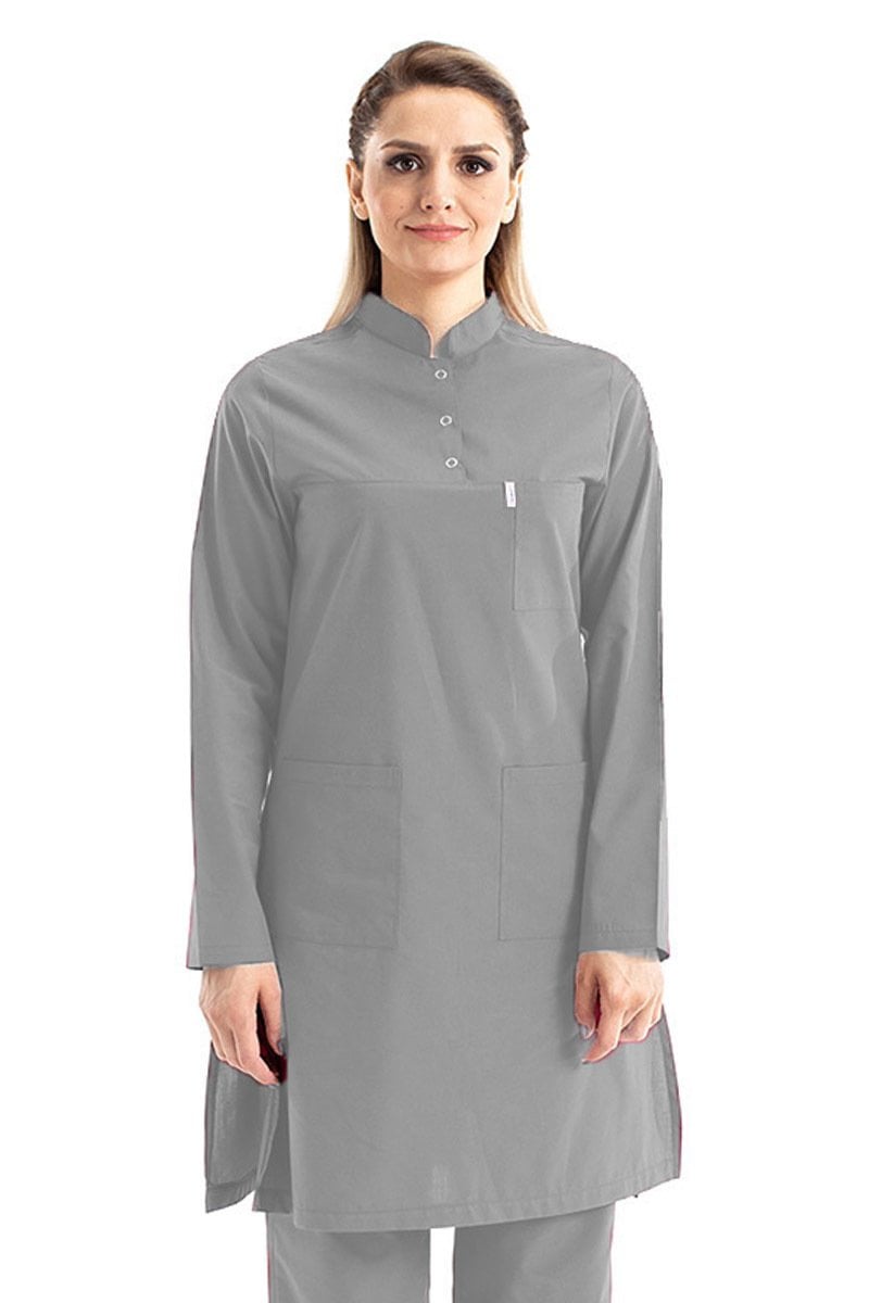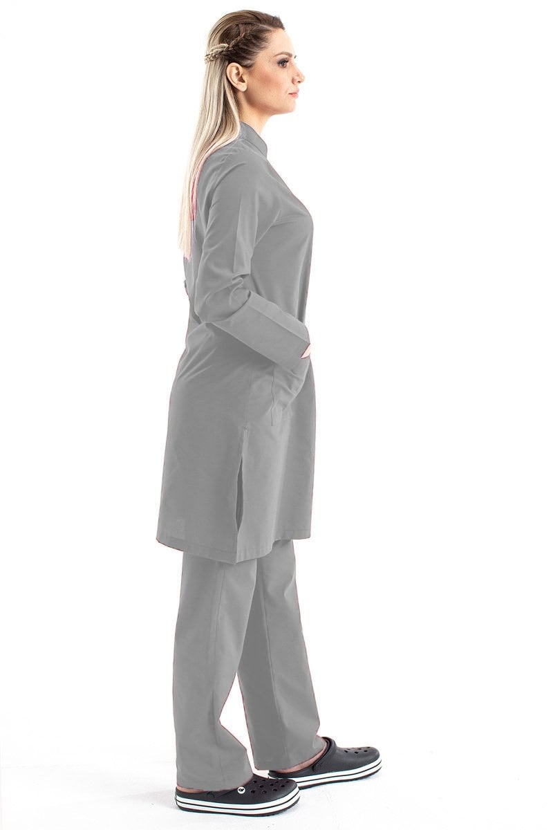 Tesettür Doktor Forması Hakim Yaka Terikoton Takım Tst03 34-XXS - Gri