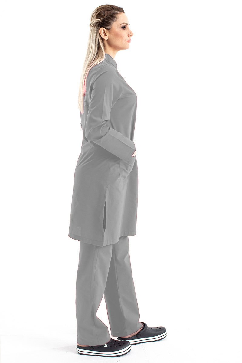 Tesettür Doktor Forması Hakim Yaka Terikoton Takım Tst03 38-S - Gri