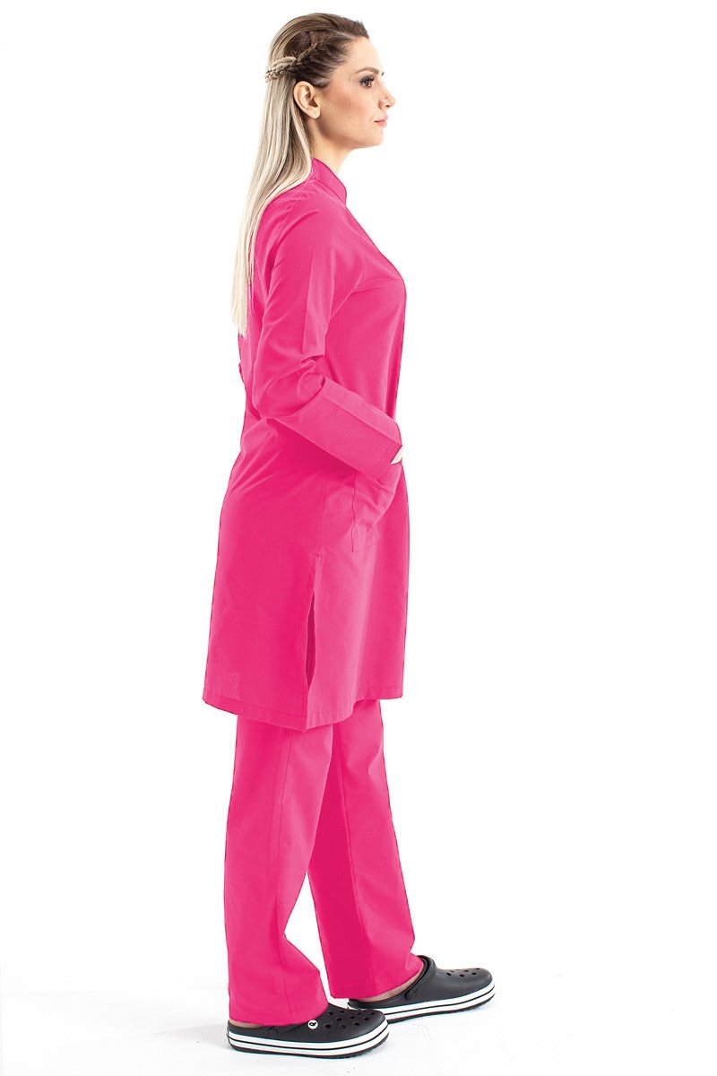 Tesettür Doktor Forması Hakim Yaka Terikoton Takım Tst03 40-M - Fuşya