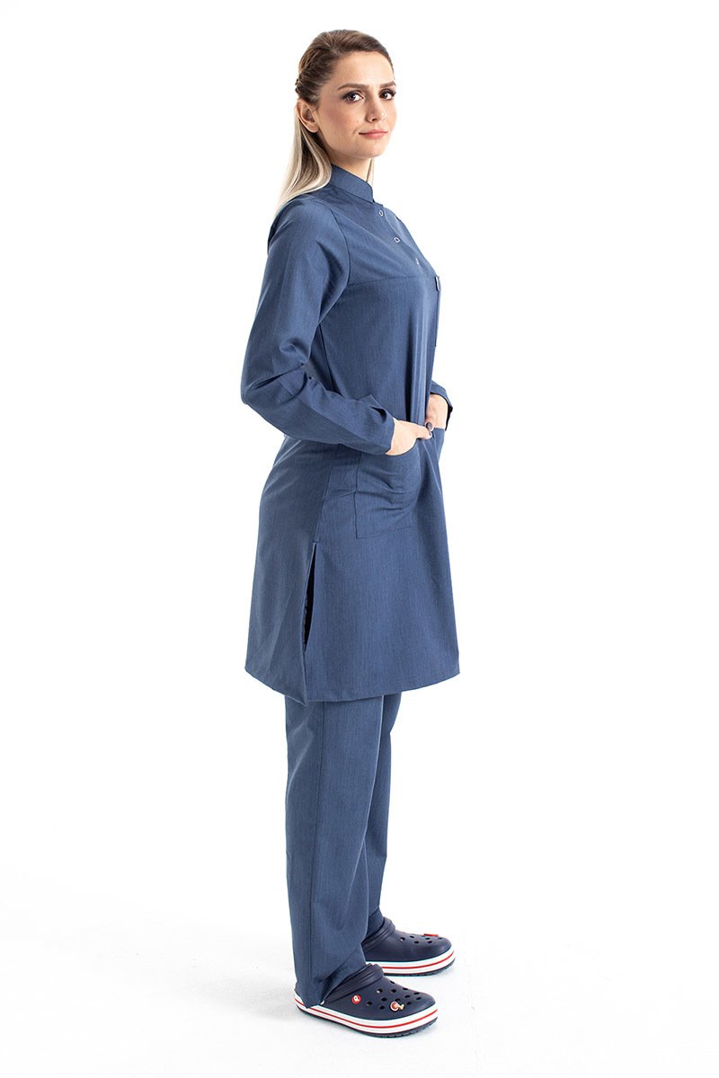 Tesettür Doktor Forması Hakim Yaka Terikoton Takım Tst03 40-M - İndigo