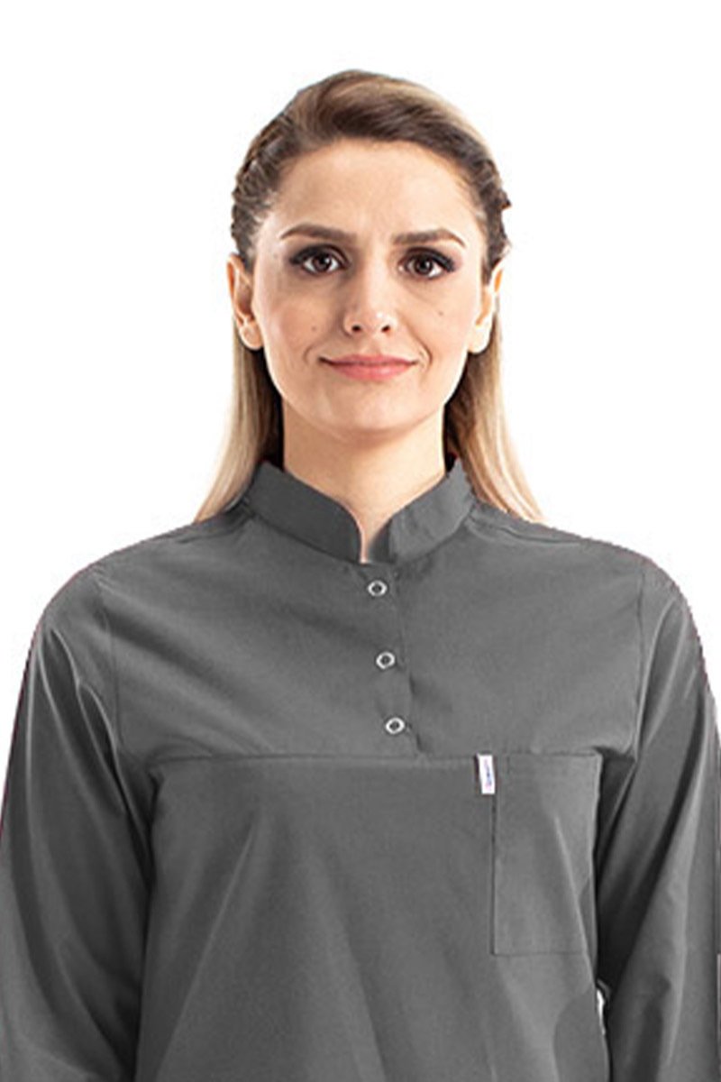 Tesettür doktor forması hakim yaka terikoton takım ürünü Labor Tekstil tarafından üretilmiş bir üründür. Bu ürün hemşirelerin giyebilmesi için üretilmiştir. Ürünü tesettür giyim tarzını benimsemiş olan doktor ve hemşireler kullanabilir.