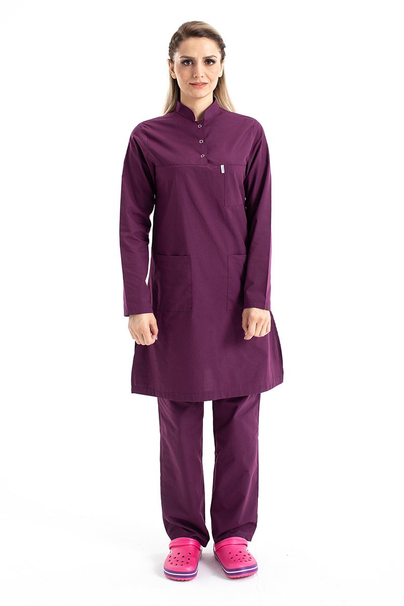 Tesettür Doktor Forması Hakim Yaka Terikoton Takım Tst03 44-XL - Mürdüm