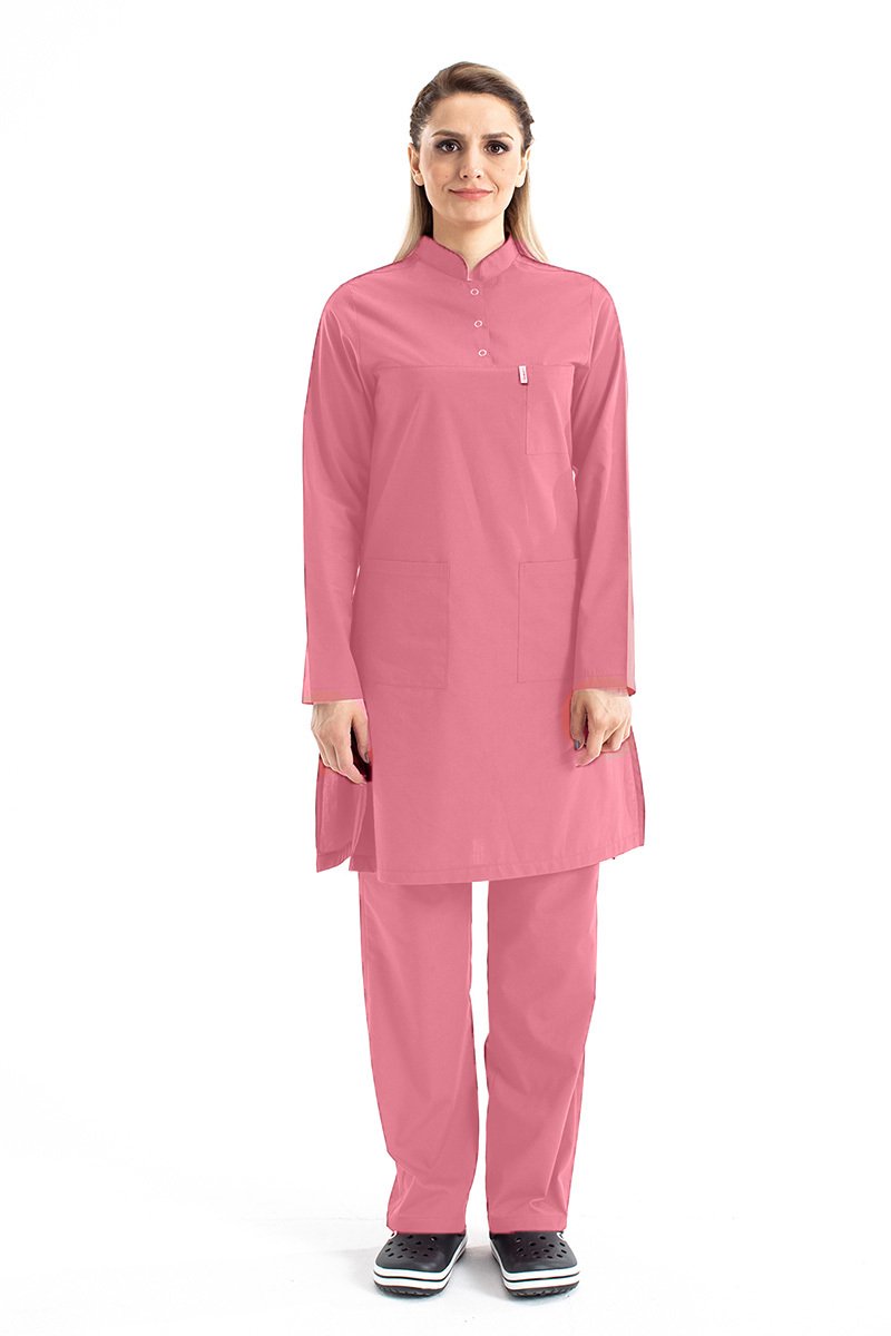 Tesettür Doktor Forması Hakim Yaka Terikoton Takım Tst03 46-2XL - Mercan