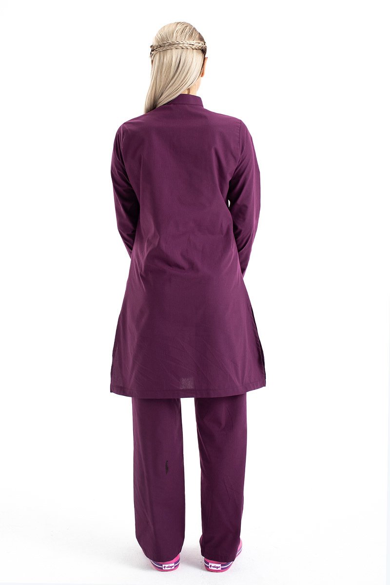 Tesettür Doktor Forması Hakim Yaka Terikoton Takım Tst03 46-2XL - Mürdüm