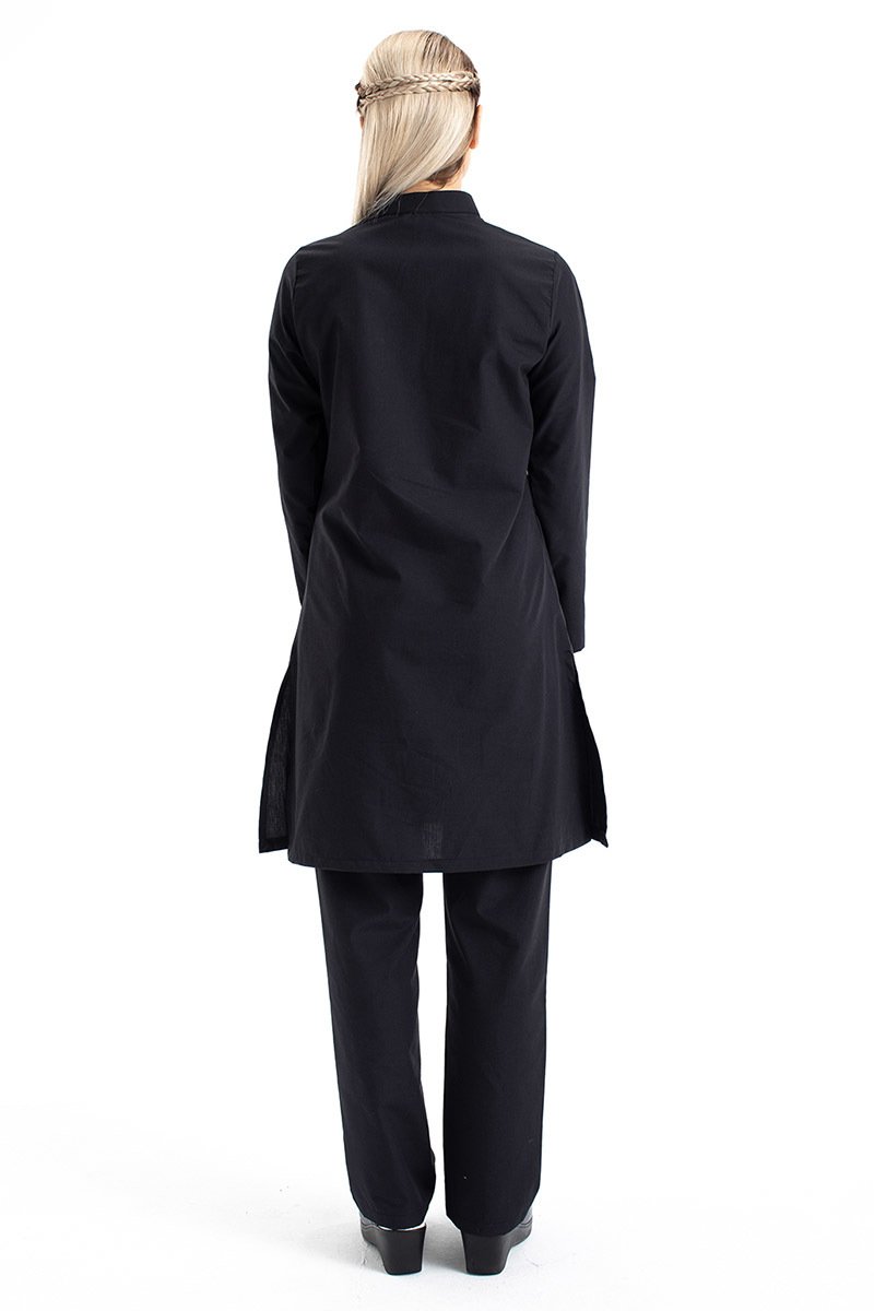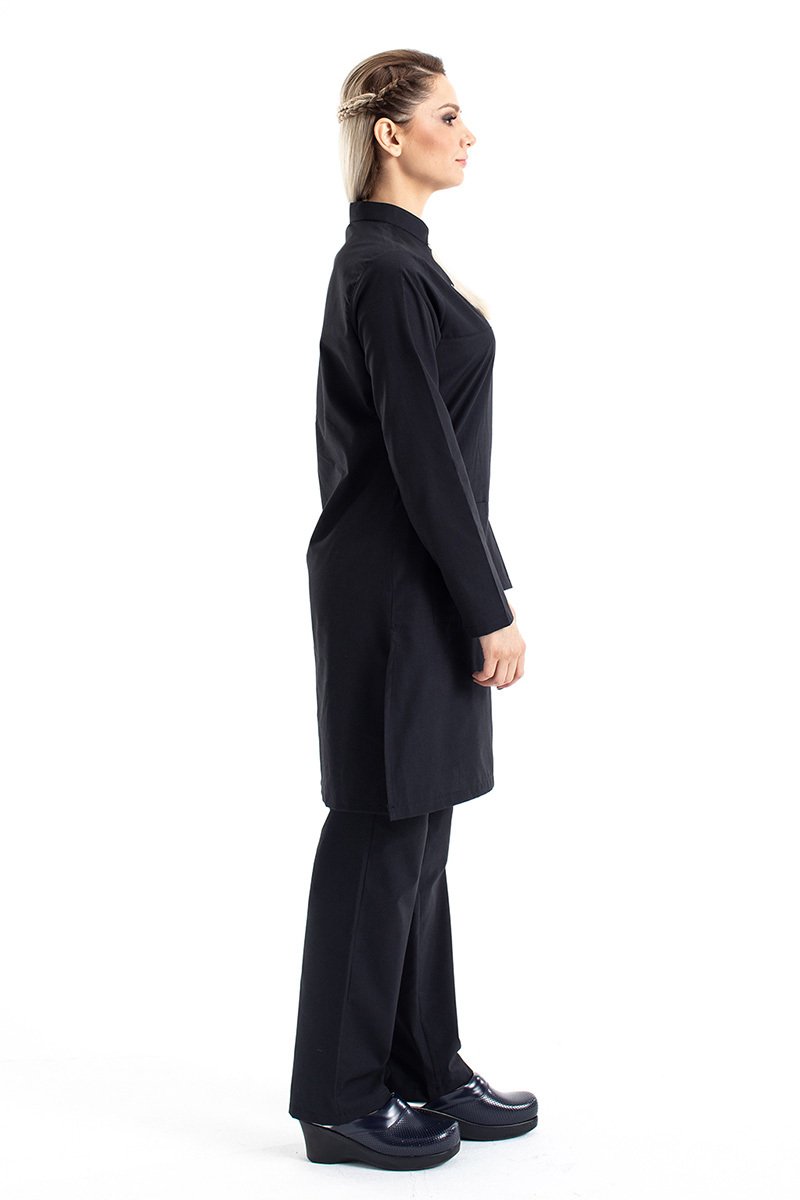 Tesettür Doktor Forması Hakim Yaka Terikoton Takım Tst03 46-2XL - Siyah