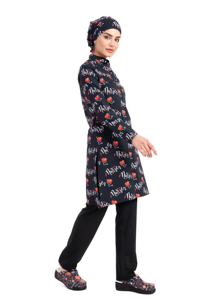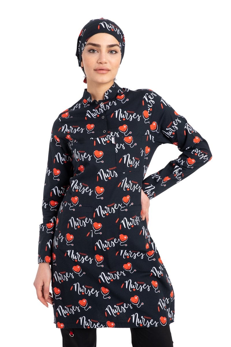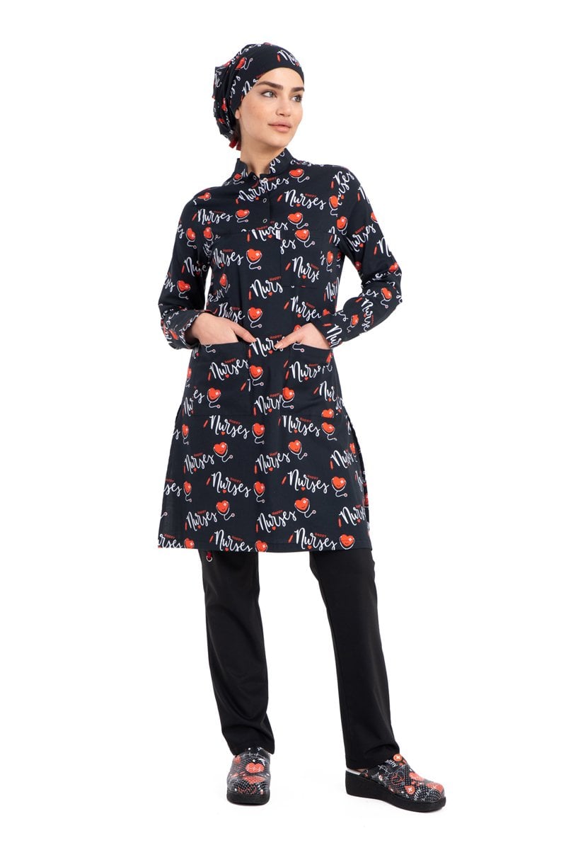 Tesettür hemşire forması nurse desenli Tst-03Pamuklu Likralı