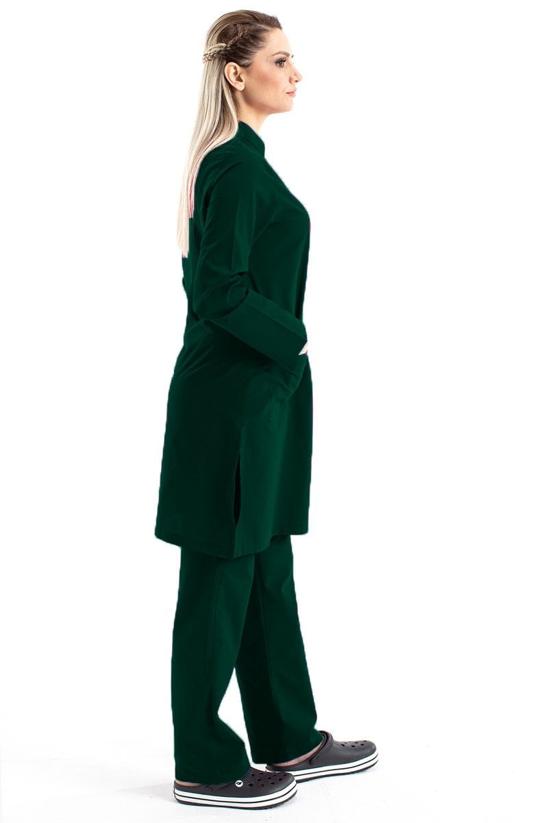 Tesettür Hemşire Forması Tek Üst Hakim Yaka Model Terikoton Kumaş Tst-03 56/7XL Özel Sipariş - Haki Yeşil
