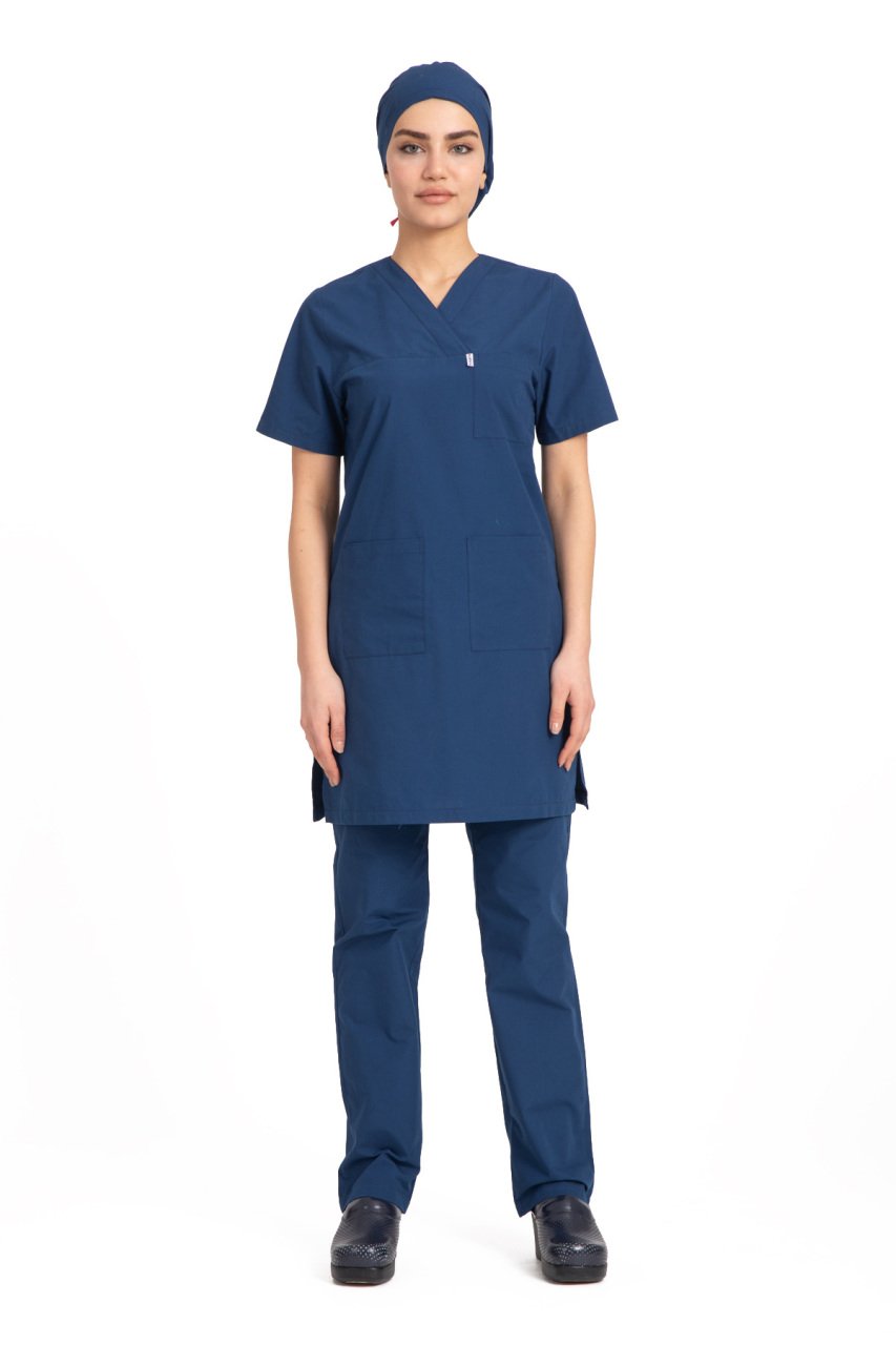 Tesettür hemşire forması terikoton kumaş, rahatlığı ve modernliği bir arada sunar. Üst forma boyunun uzun olması sayesinde rahat bir çalışma olanağı sağlar. Kullandığımız kumaş rahat ve nefes alabilen bir kumaştır. Üst forma altında bulunan yırtmaçlar sayesinde eğilip kalkarken rahat hareket etmenizi sağlar. Kesimi dar ya da çok bol değil moderndir.