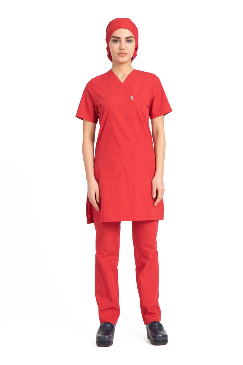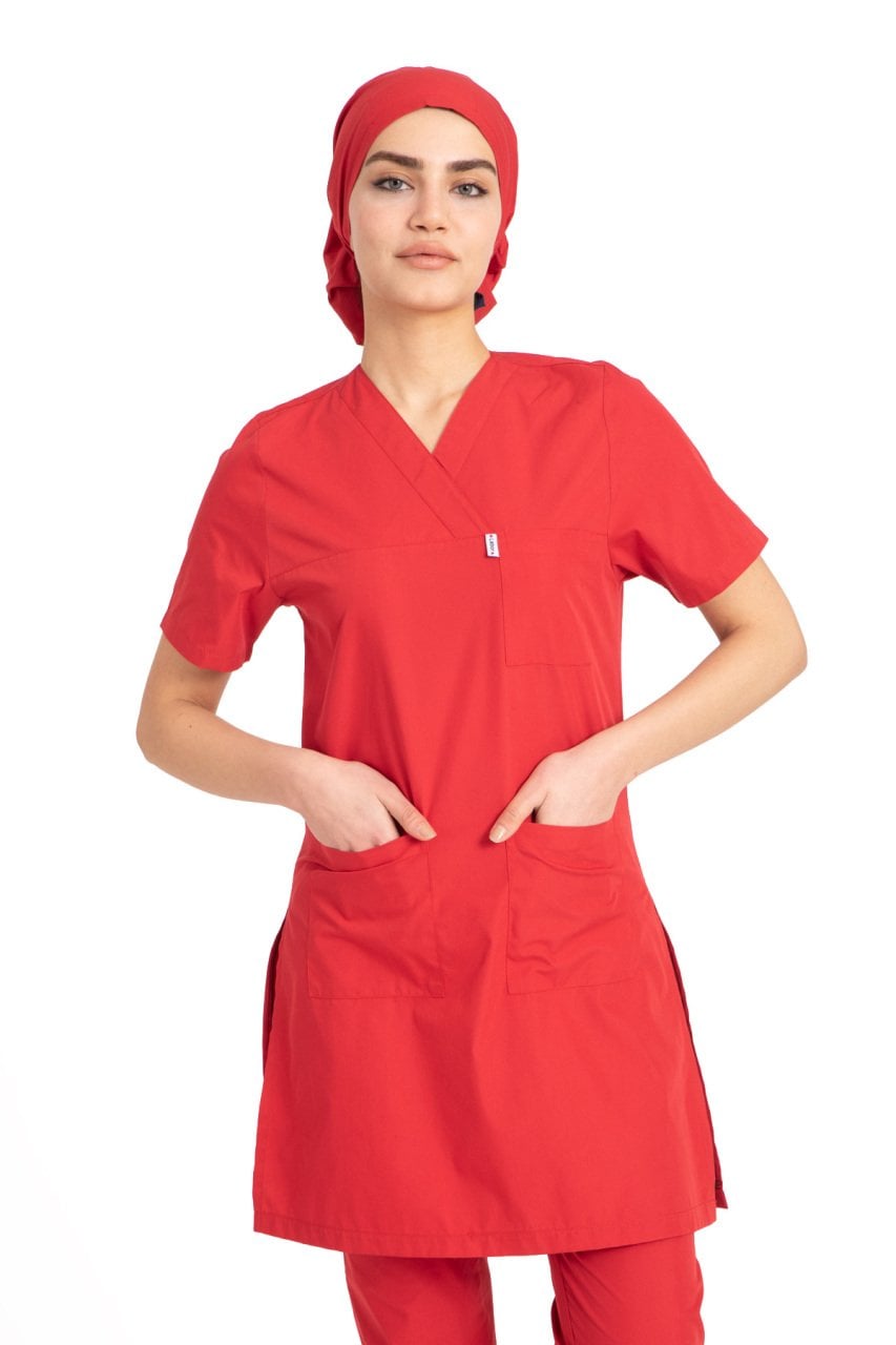 Tesettür hemşire forması terikoton kumaş tst-04 34/XXS - Kırmızı