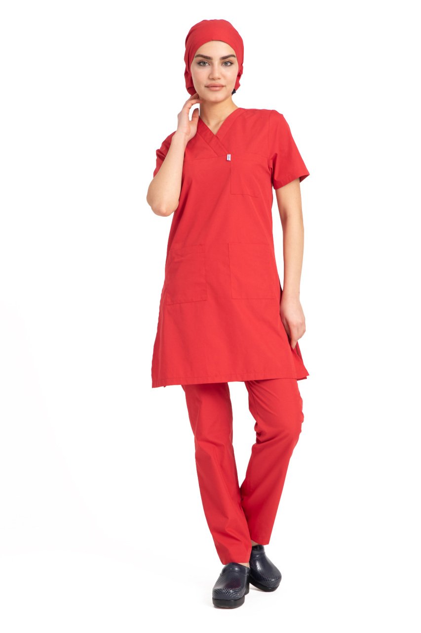 Tesettür hemşire forması terikoton kumaş tst-04 42/L - Kırmızı