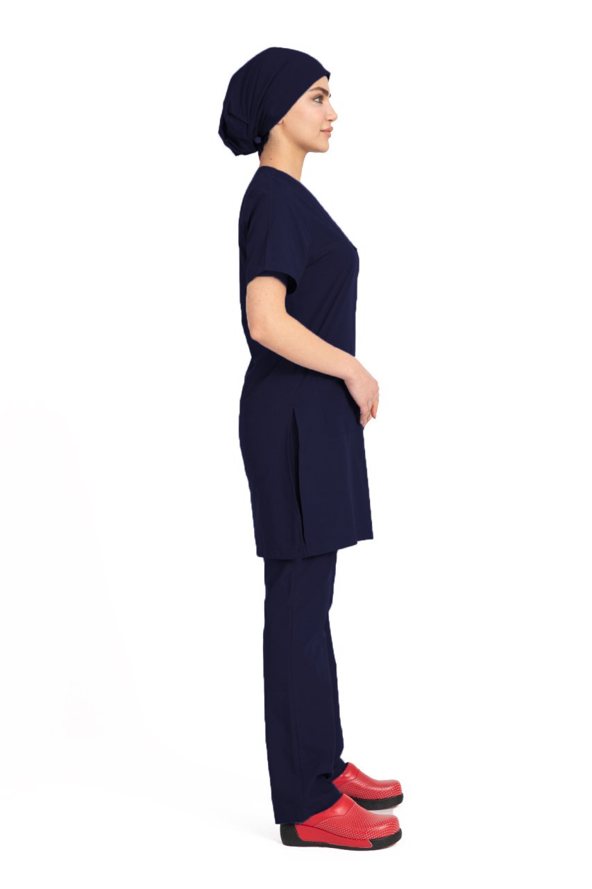 Tesettür hemşire forması terikoton kumaş, rahatlığı ve modernliği bir arada sunar. Üst forma boyunun uzun olması sayesinde rahat bir çalışma olanağı sağlar. Kullandığımız kumaş rahat ve nefes alabilen bir kumaştır. Üst forma altında bulunan yırtmaçlar sayesinde eğilip kalkarken rahat hareket etmenizi sağlar. Kesimi dar ya da çok bol değil moderndir.