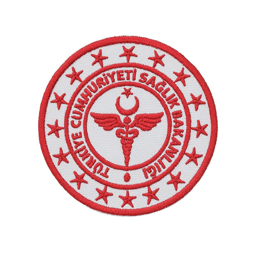 Türkiye Cumhuriyeti Sağlık Bakanlığı'na ait bu özel tasarım nakışlı arma patch ile profesyonelliğinizi ve kurum bağlılığınızı şıklıkla sergileyin. Kaliteli işçilik ve dayanıklı malzemelerle üretilen bu kumaş logo, üniformalarınız, ceketleriniz, çantalarınız veya koleksiyonlarınız için ideal bir ektir.