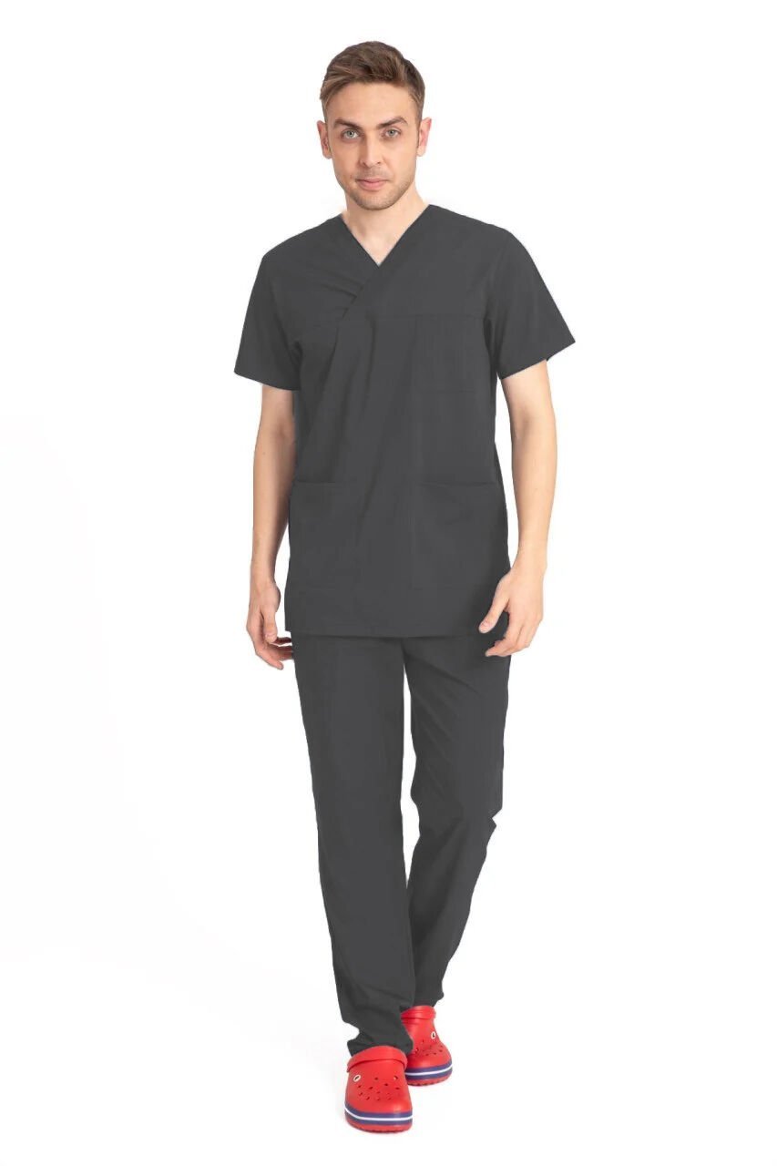 V Cerrahi Yaka Takım Terikoton Kumaş Erkek Füme