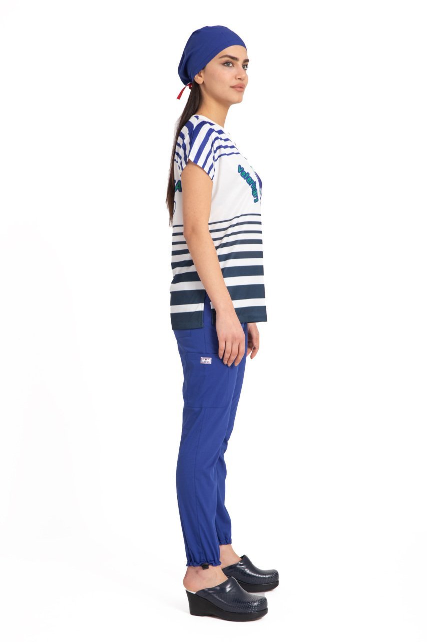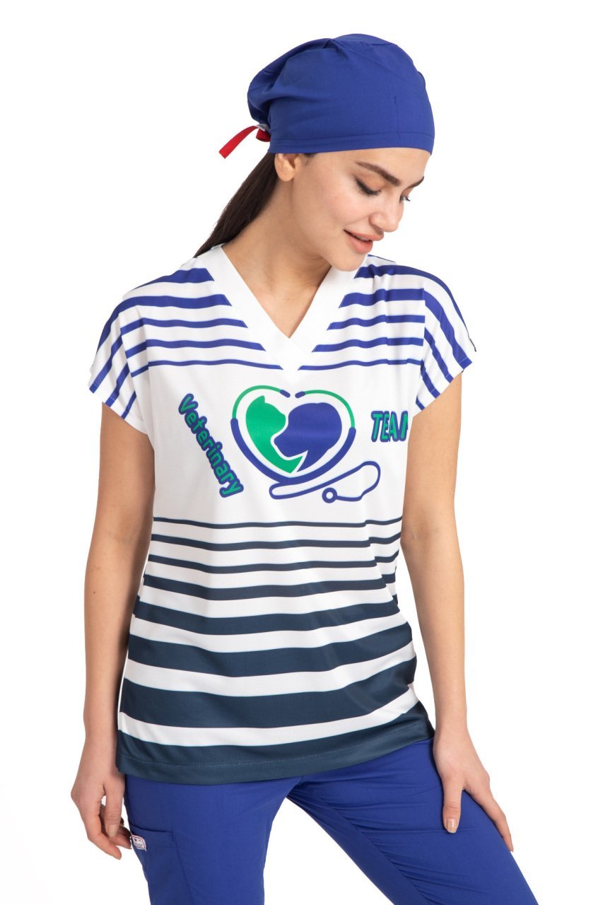 Veteriner hekim forma kadın tek üst, farklı renk ve desen seçenekleri sunar. Bu kıyafetler genellikle mavi, yeşil, beyaz gibi renklerde üretilir ve üzerinde hayvan desenleri veya veterinerlik sembolleri gibi özel baskılar yer alabilir.
